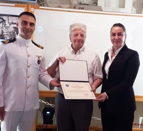 Bu arada halen gemide kalıcı Atatürk Fotoğrafları"sergisi devam eden rahmetli Hanri Benazus'a da bir şükran plaketi sunuldu. Plaketi Benazus Ailesi adına asistanı Derya Yelkankaya ile birlikte, İzmir Müze Gemiler Müdürü Üsteğmen Çağrı Pala'nın elinden almak benim için onur vericiydi