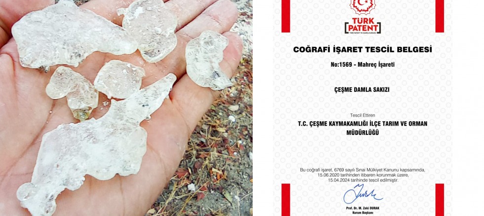 Dünyada sadece Yunanistan'ın Sakız Adası'nda ve Çeşme'de elde edilebilen damla sakızı, Türk Patent ve Marka Kurumu tarafından tescillenerek, "Coğrafi İşaret" verildi.