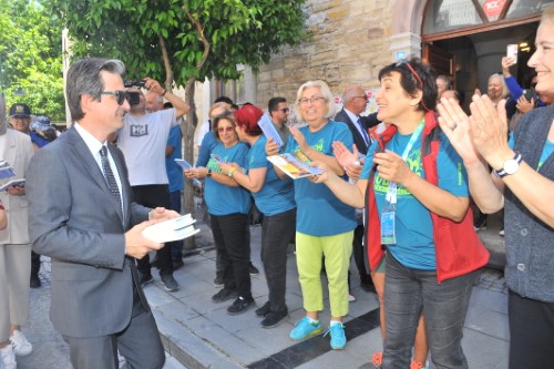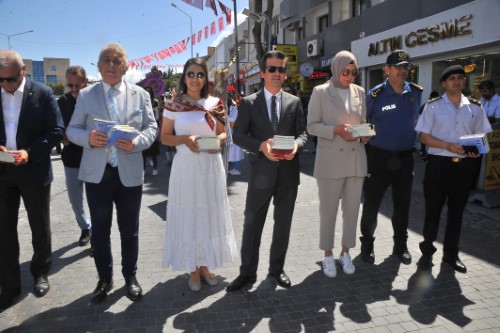Kortej yürüyüşü, çarşı esnafı ve vatandaşlar tarafından büyük ilgi görürken, Kaymakam Maraşlı, Belediye Başkanı Denizli, Proje Koordinatörü Maraşlı ve protokol üyeleri, esnafa ve vatandaşlara kitap hediye ettiler. Kortej yürüyüşü Cumhuriyet Meydanı'nda sona erdi.