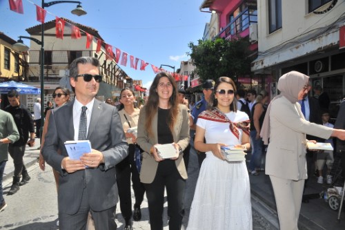 Çeşme Kaymakamlığı himayesinde, Arzu Güleryüz koordinasyonunda yürütülen "Hayatın Anlamı Kitap" projesi kapsamında, Çeşme'deki okulların ve öğrencilerin katılımıyla "Kitap Takas Şenliği" düzenlendi. 3 Mayıs Cuma günü gerçekleştirilen etkinlik, Mehmetçik Parkı'ndan başladı. Animatörlerin ve kitaplardaki kahramanları canlandıran rengarenk giysili çocukların renklendirdiği kortej yürüyüşü, Çeşme Belediyesi Bandosu eşliğinde gerçekleştirilirken, Çeşme Kaymakamı Mehmet Maraşlı, Çeşme Belediye Başkanı Lal Denizli, Proje Koordinatörü Arzu Güleryüz Maraşlı, Çeşme İlçe Emniyet Müdürü Murat Doğramacı, İlçe Jandarma Komutanı Üsteğmen Yavuz Yaşar, İlçe Milli Eğitim Müdürü Şahan Çöker de yürüyüşe katıldı.