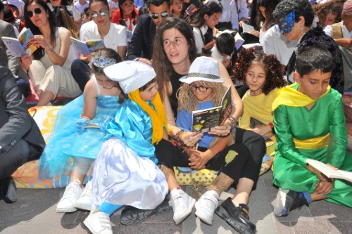 Konuşmanın ardından protokol üyeleri, öğrenciler ve etkinliğe katılanlar, Cumhuriyet Meydanı'nda bir süre kitap okudular.