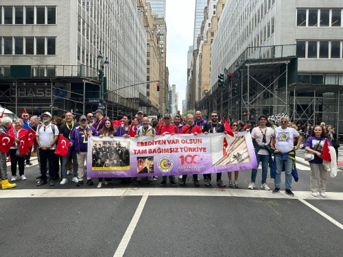 İAL Mezunlar Derneği Başkanı Murat Saraç, Umut Saraç, Meryem Dilşad Bağış, Uğur Çakar, Aylin Çakar, Savaş Özok, Demet Özok, Mira Özok, Onur Özsu, Adnan Bozbay, Ümit Çakmak, Harun Atalayman, Sena Örücü, Zeynep Örücü ve Batuhan Uzel’in aralarında olduğu İAL mezunları, Manhattan Parkı girişinde 41. kez gerçekleştirilen, simgesel önemi büyük olan Bayrak Çekme törenine katıldı. Ertesi gün ise İAL Mezunları, coşkularıyla New York’daki Türk Yürüyüşü’ne damga vurdu. Dernek Başkanı Murat Saraç, “Atatürk, Türkiye’yi gençlere emanet etti. Gençlerin bu emanete sahip çıkabilmesi için iyi bir eğitime ihtiyacı var. İzmir Atatürk Lisesi bunun en önemli teminatıdır. Okulumuza gönülden bağlı Sayın Başkonsolosumuz Reyhan Özgür ve ekibine ayrıca şükranlarımızı sunarız” dedi