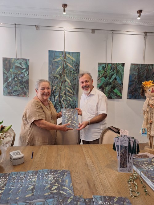 Şeyda Gürsoy Çoban’ın “Zeytine Umut” adlı resim sergisi Alaçatı Köstem Otel’de sanatseverlerle buluştu. Küratörlüğünü Sibel Önbaş’ın üstlendiği sergi, yoğun ilgi gördü. Sanatçı, açılışta ayrıca okurları için kitabını da imzaladı
